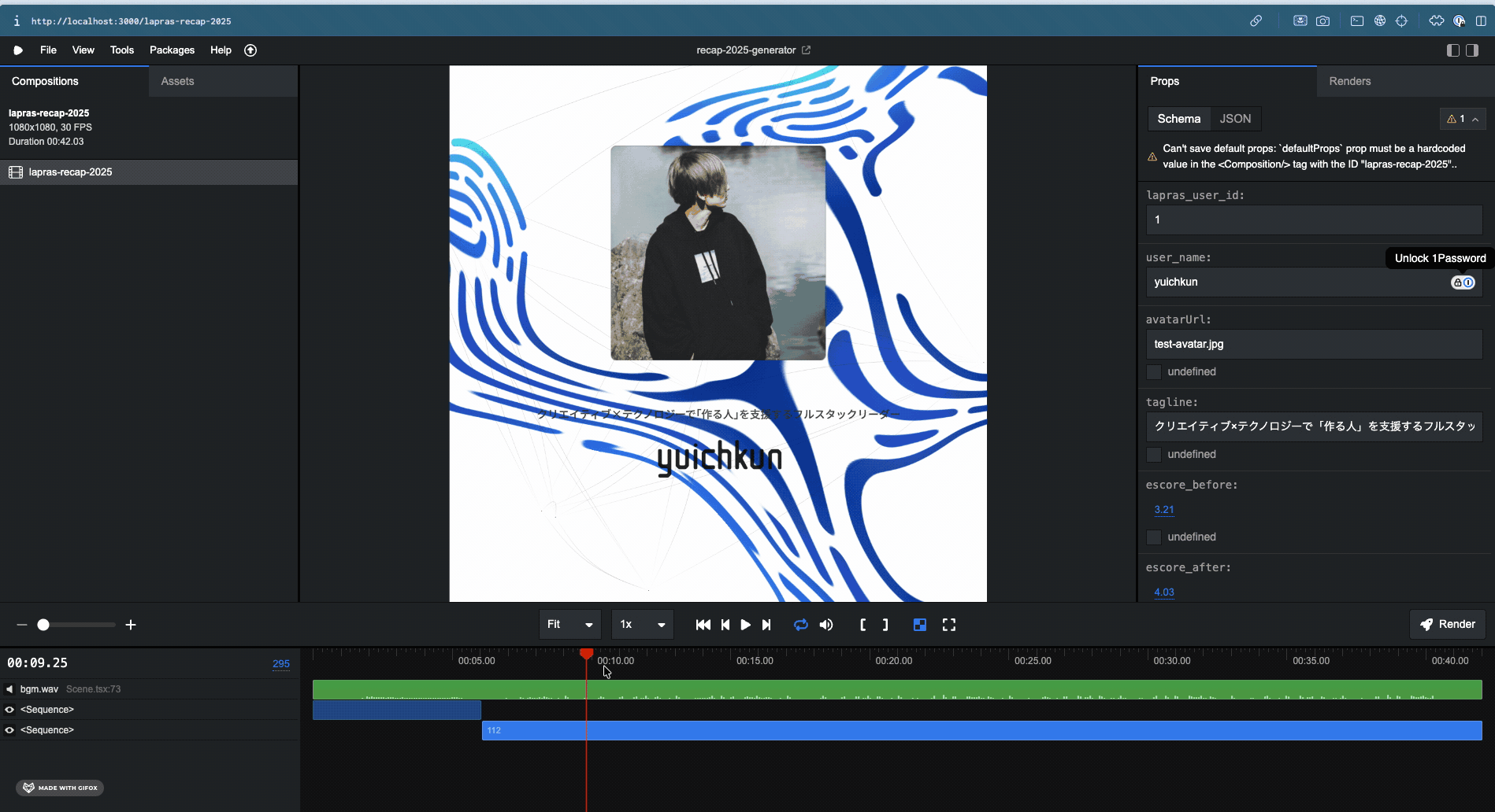 そこで、今回の制作にあたっては Remotion というツールを使うことで、プログラムによる動画生成を行いました。